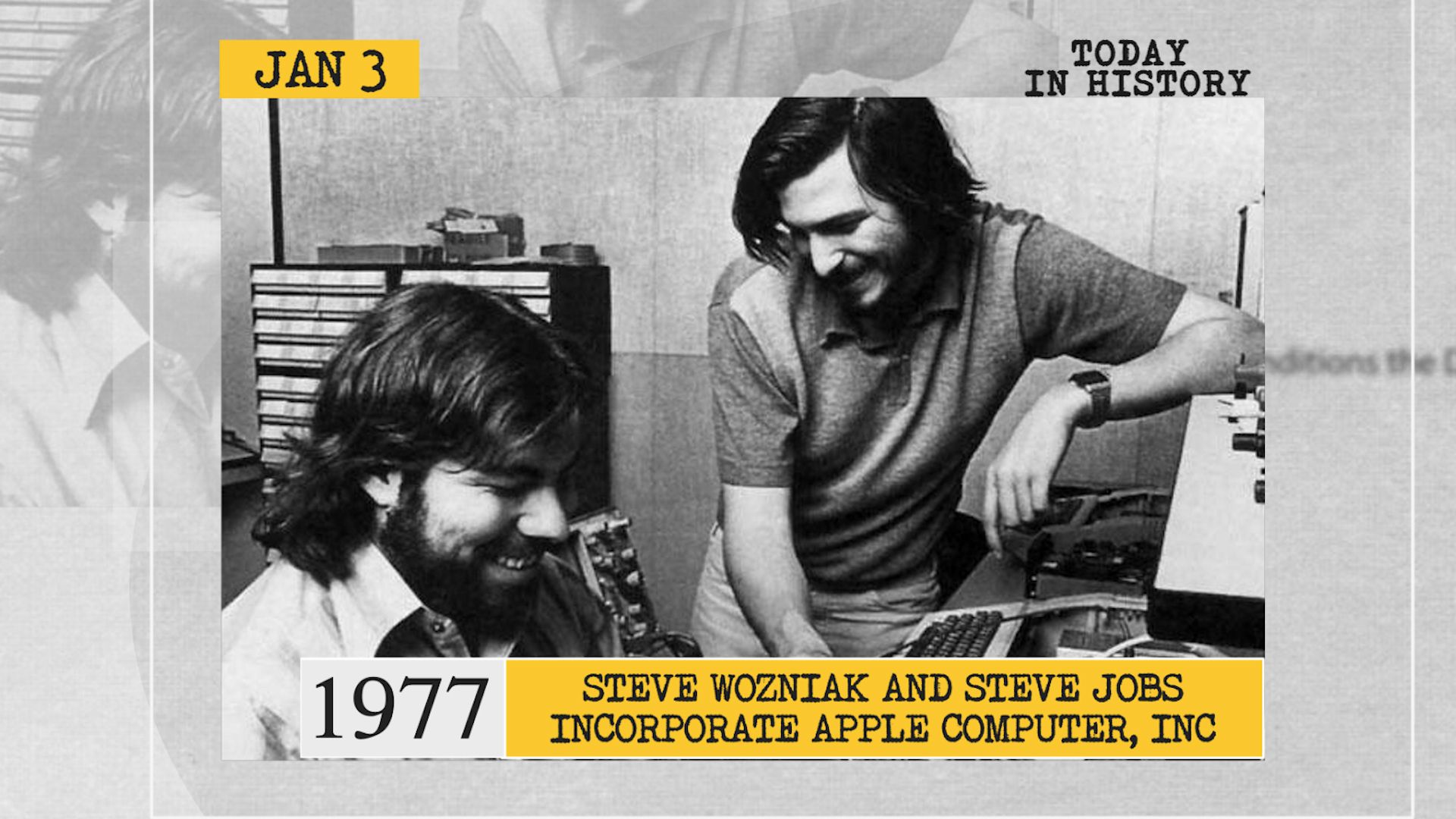 Tech History: Celebrating the incorporation of Apple Computer (1977) and Time's "Machine of the Year" (1983).